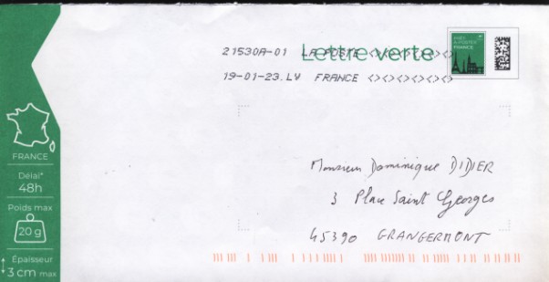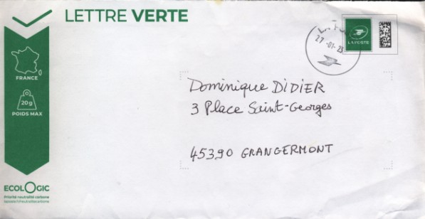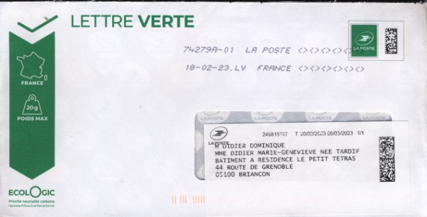lettre verte Logo lLa Poste suivi 20g