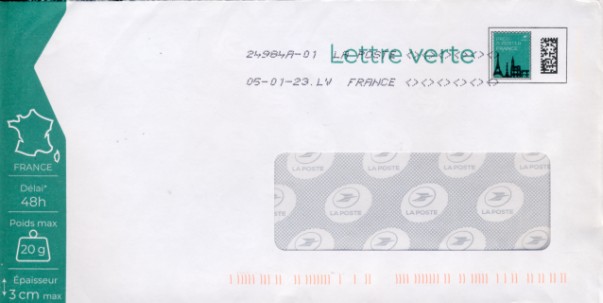 Lettre verte logo La Poste avec fenetre