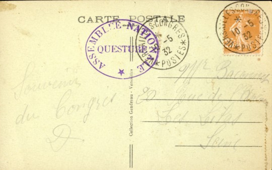 d'Albert Lebrun) Versailles Congrès Postes