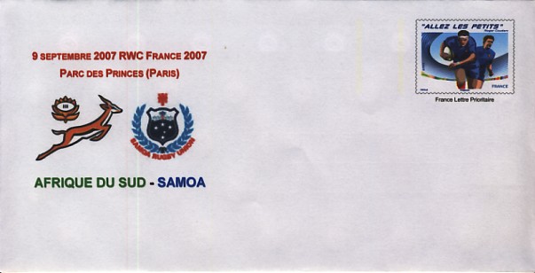 | 12 | ![]() 2007 : EFR P 157 Enveloppe Coupe du Monde France 2007 : 9 sept : Afrique du Sud - Samoa |