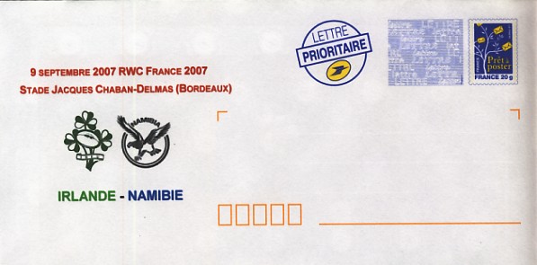 ![]() 2007 : EFR P 177R Enveloppe Coupe du Monde France 2007 : Irlande, Namibie |