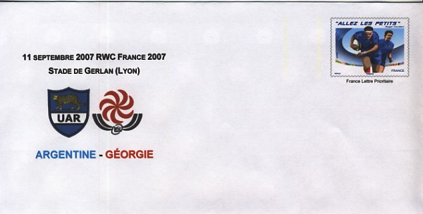 ![]() 2007 : EFR P 177S Enveloppe Coupe du Monde France 2007 : Argentine, Géorgie |