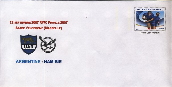 ![]() 2007 : EFR P 177AJ Enveloppe Coupe du Monde France 2007 : Argentine, Namibie |