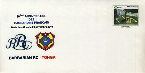 ![]() 2010 : EFR P 248 Enveloppe 30e anniversaire des Barbarians français : Barbarians - Tonga |