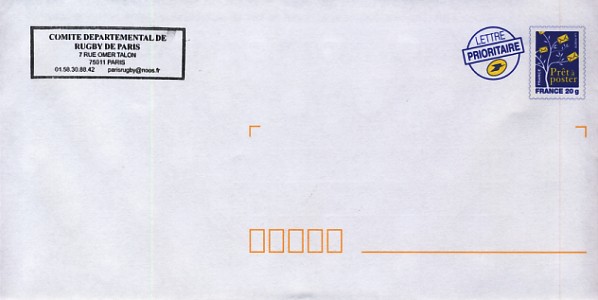 ![]() 2010 : EFR P 250 Enveloppe Comité de rugby de Paris |