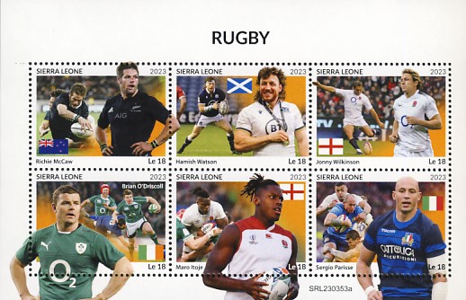 les joueurs de rugby : Richie McCaw, Hamish Watson, Johny Wilkinson, Brian O'Discoll, Mario Itoje, Sergio Parisse