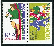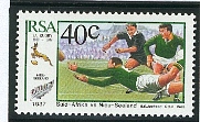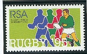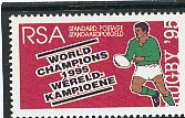 Sports en Afrique du Sud, le retour aux compétitions internationales. Ce timbre fait partie d’une série consacrée aux principaux sports Sud Africain