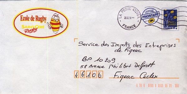 ![]() 2010 : EFR P 252H Enveloppe Saint Céré école de rugby |