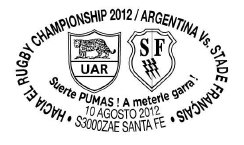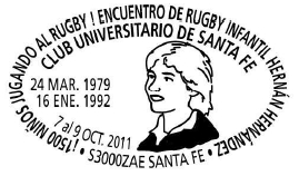 AR13 : Santa Fé Date : 27 mai-25 juin 1995 Exposition philatélique sur le rugby (Club Universitario) |