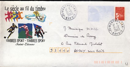 entier carte postale avec repro du timbre du stade