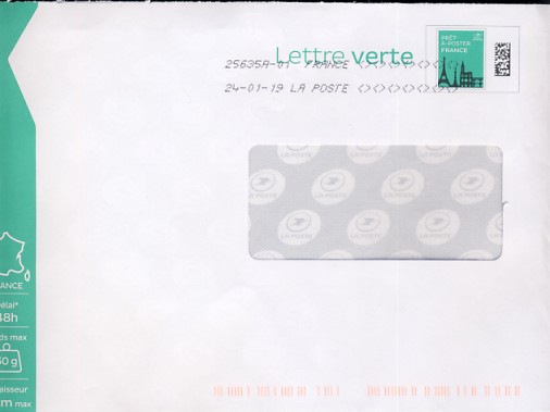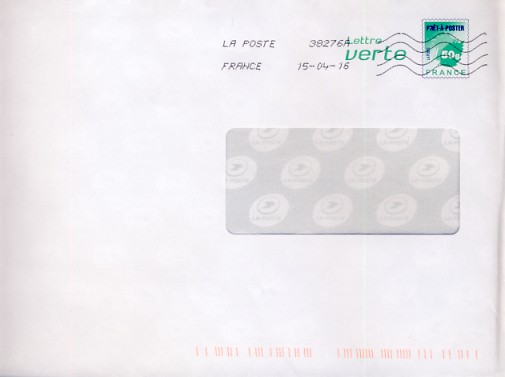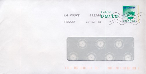 Lettre verte logo La Poste avec fenetre