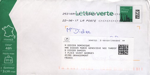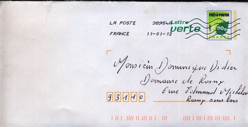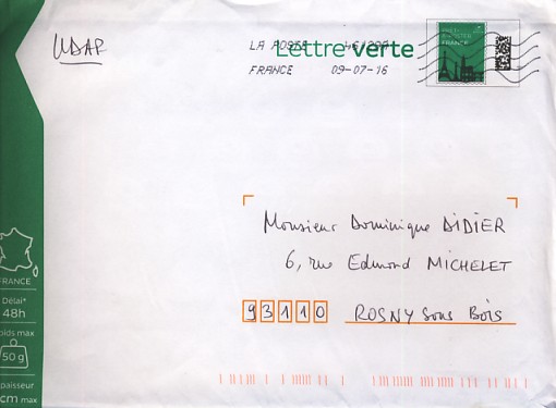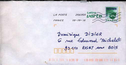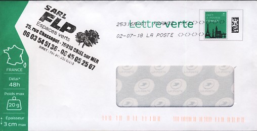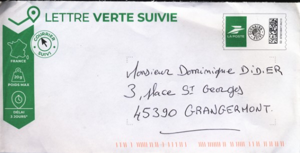 lettre verte Logo lLa Poste suivi 20g