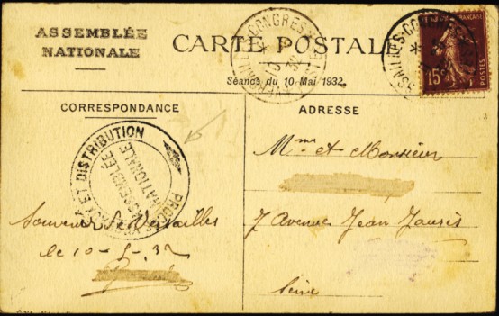 d'Albert Lebrun) Versailles Congrès Postes